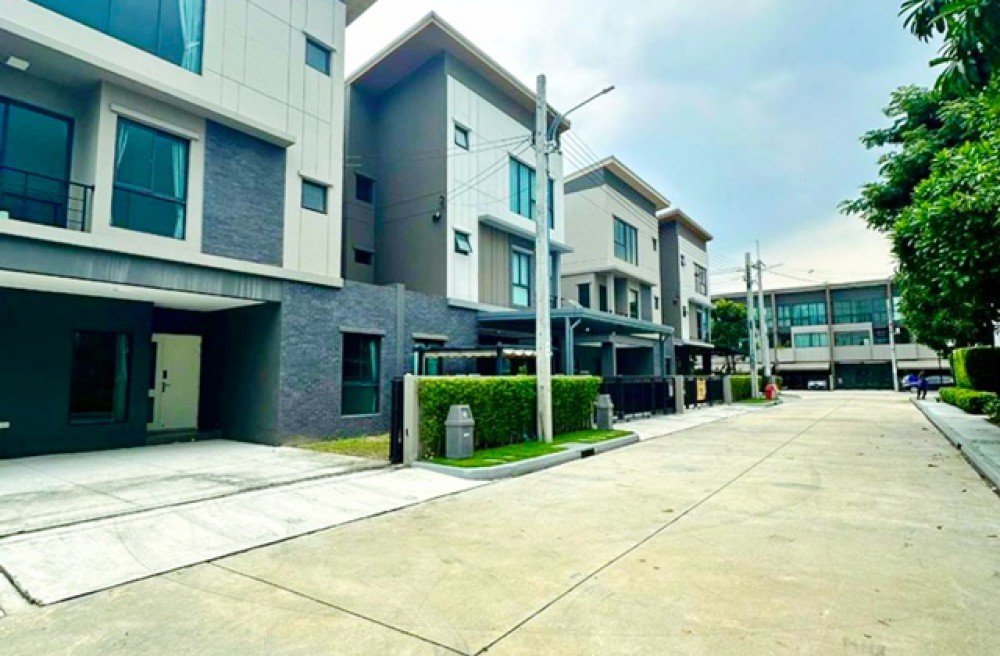 Fashion Island 1.8km. MRT Ramintra83 900m. Khubon 3-story house 4bed 4bath near usable area 31sq.wa. 370sq.m. rent 64,999 B-M corner house next to garden luxury villa style fully furnished suitable for living prime location in Ramintra tranquil and private atmosphere connected to Chalong Ratch Expressway and Kanchanaphisek Expressway