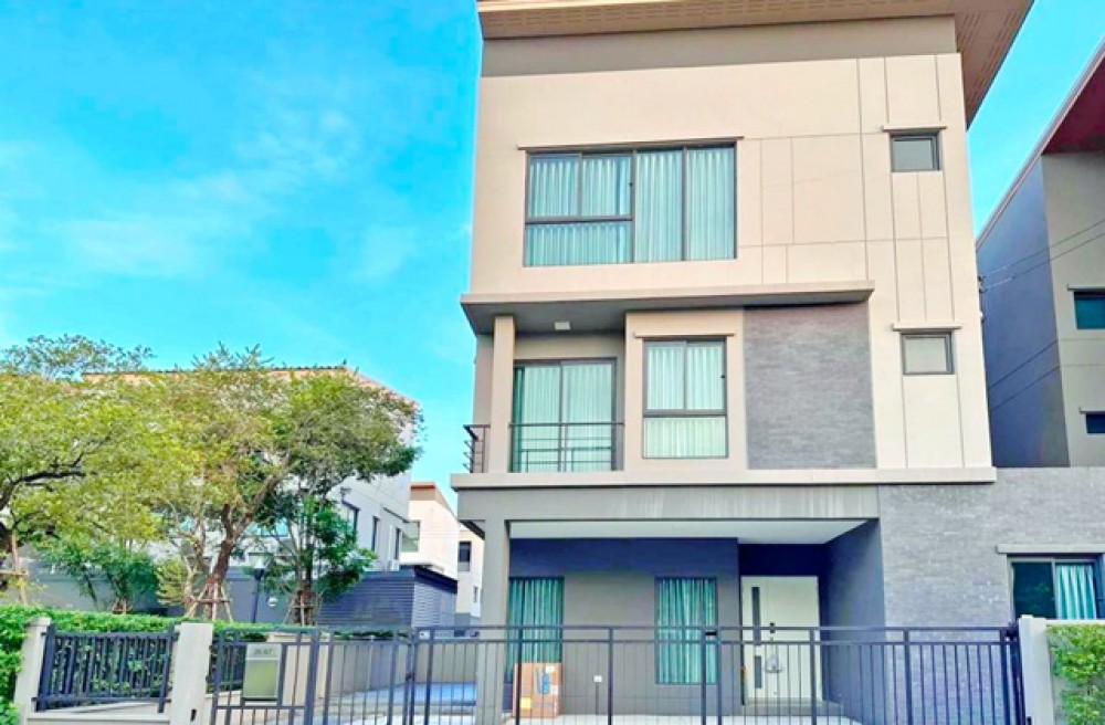 Khubon 3-story house 4bed Fashion Island 1.8km. MRT Ramintra83 900m. 4bath near usable area 31sq.wa. 370sq.m. rent 63,999 B-M corner house next to garden luxury villa style fully furnished suitable for living prime location in Ramintra tranquil and private atmosphere connected to Chalong Ratch Expressway and Kanchanaphisek Expressway