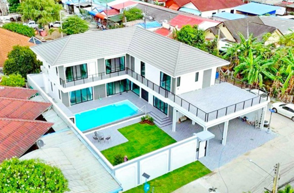 Phra Praphanimit 5-11 Luxury house with private pool 5 bed 6 bath 700 m. from Nong Prue Market land size 130 sq.wa. usable area 450 sq.m. rent 149,999 B-M. brand new fully furnished house suitable for residence holiday home or rental business near Pattaya Dolphinarium 1.7 km. convenient access to Sukhumvit Road connecting Pattaya Central Pattaya South and tourist attractions
