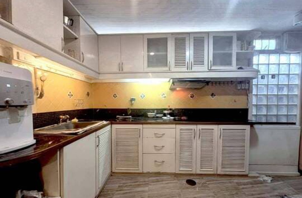 - บิ้วอินครัวและท็อปหิน มีประตูเลื่อนกั้นส่วนครัว ปรับพื้นปูกระเบื้องชนฝ้า