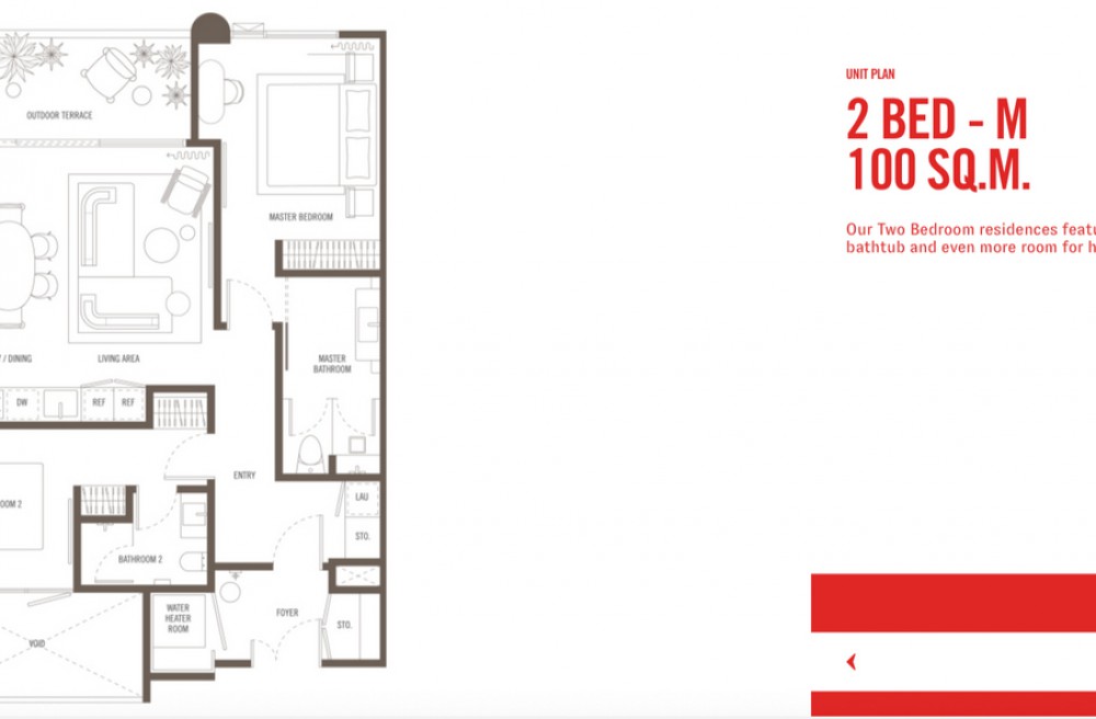 2 Bedrooms 2 Bathrooms ขนาด 100 ตารางเมตร
