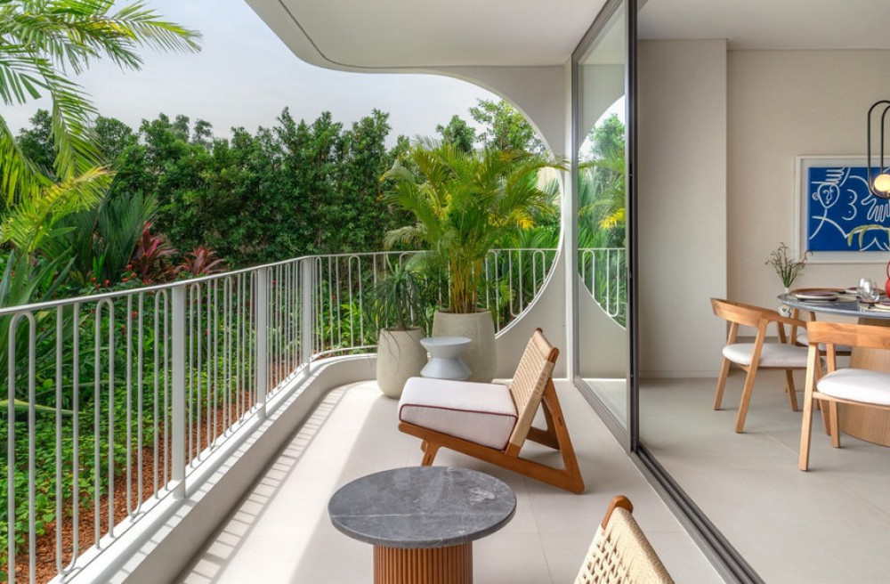 ● ตำแหน่งห้องมุมได้ความเป็นส่วนตัวสูง หน้าห้องมองลงมาเป็นสวนและบ่อน้ำส่วนกลาง