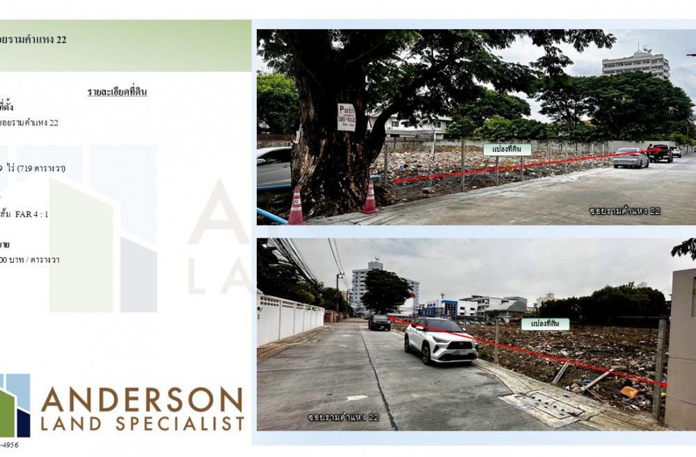 ขายที่ดินแปลงสวย ซอยรามคำแหง 22 (ติดถนนซอย) เนื้อที่ 1-3-19ไร่