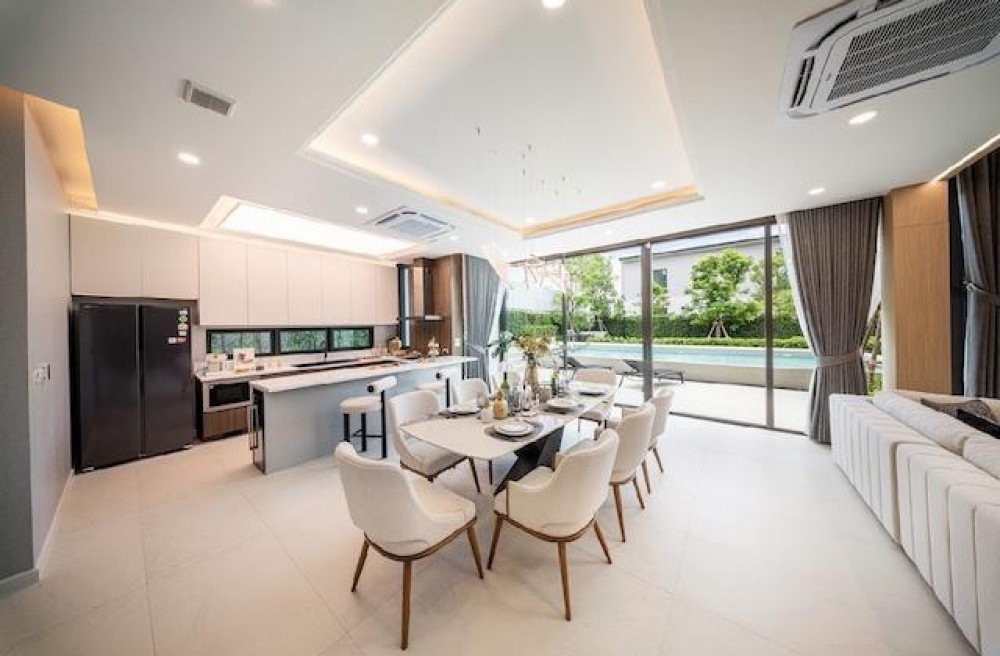 จุดเด่นโครงการ บ้านเดี่ยวหรูพื้นที่ขนาดใหญ่ ดีไซน์สมัยใหม่ โปร่งโล่ง เหมาะสำหรับครอบครัวระดับไฮเอนด์ ใกล้รถไฟฟ้าและทางด่วน