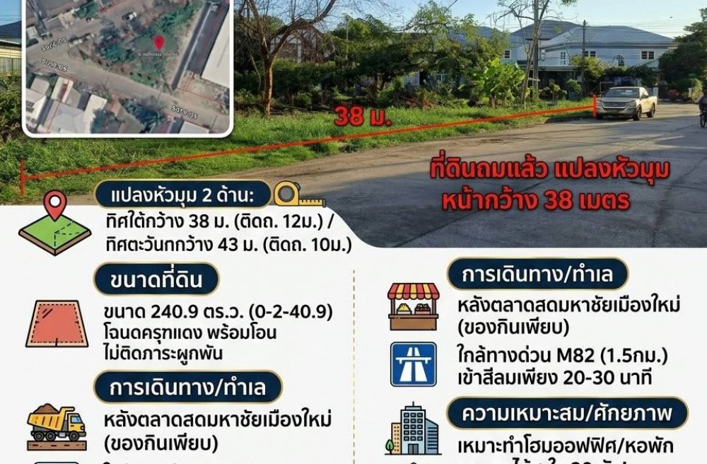 เข้า-ออกได้ 2 ทาง แปลงหัวมุม หน้ากว้าง 38 เมตร เหมาะทำโฮมออฟฟิศ/หอพัก จอดรถได้สะใจ 20 คัน!