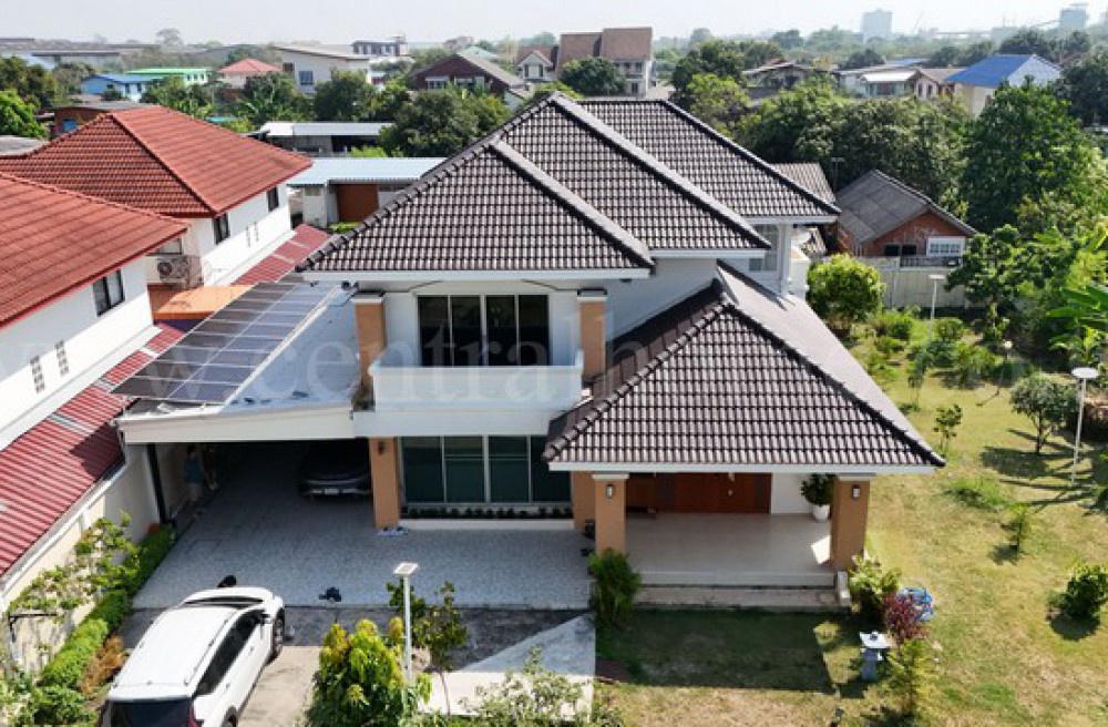 บ้านเดี่ยว 300 ตร.วา หมู่บ้านธรรมสุธีร์ ปทุมธานี ติด Solar Cell + EV Charger พร้อมสวนผลไม้