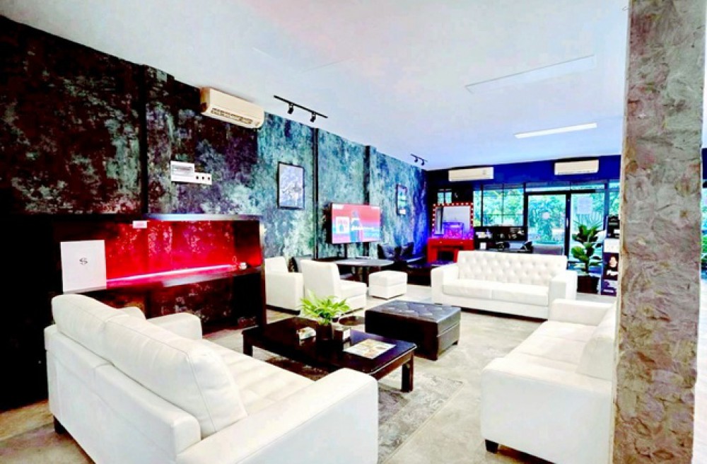 อาคารพาณิชย์ขนาดใหญ่ 2 คูหาตีทะลุ สูง 3 ชั้น โครงสร้างแข็งแรง เพดานชั้นล่างสูง 4 เมตร พื้นที่ภายในกว้าง โปร่ง สามารถปรับแต่งพื้นที่ได้หลากหลาย เหมาะสำหรับสำนักงาน บริษัท Live Commerce ห้องไลฟ์สตรีมมิ่ง หรือธุรกิจบริการต่างๆ
