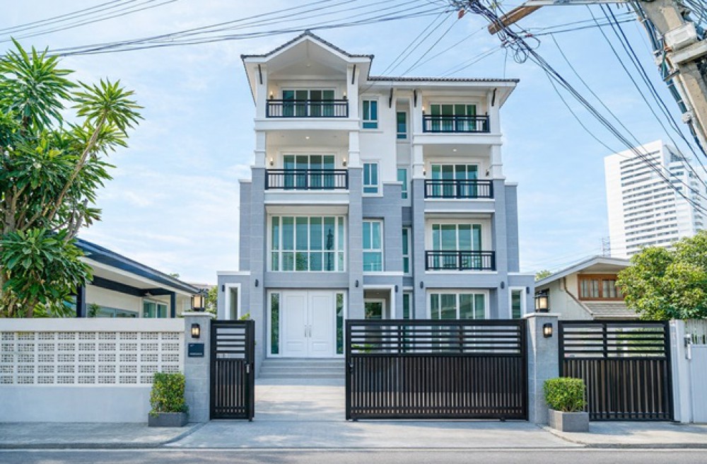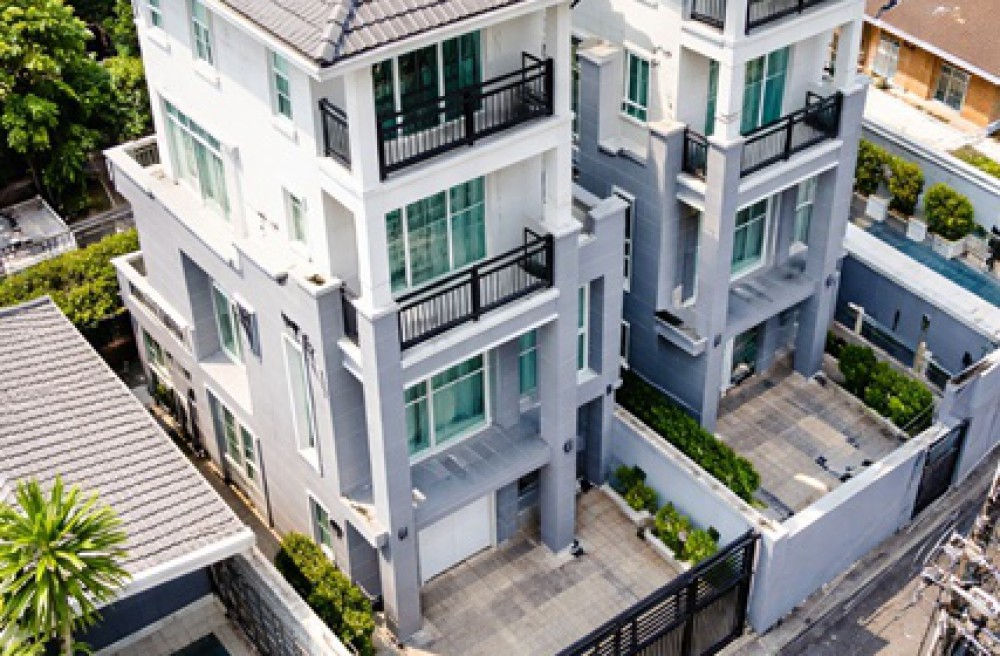 BTS Ekkamai2 km. 3.5-story townhome with mezzanine 3 bed Ekamai 10-12 3 bath . 27 sq.wa. 340 sq.m. usable area 70,999 B-M. per unit. Located on Pridi Banomyong Road Ekkamai area suitable for home office residence or AirBnB in a lush safe environment close to St. Andrews International School 1.9 km. and Sukhumvit lifestyle hub.