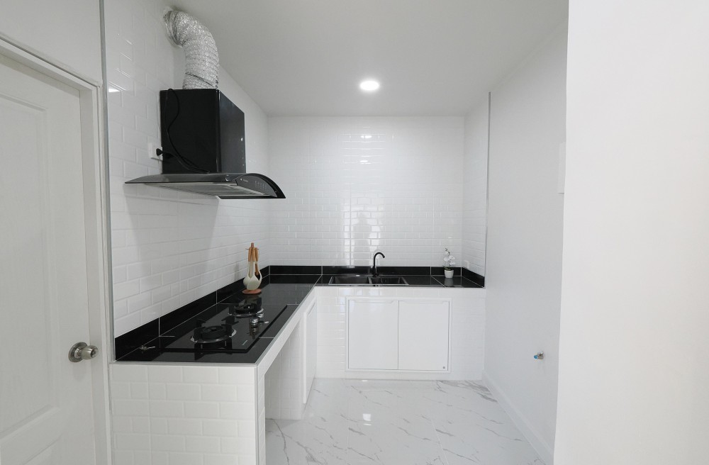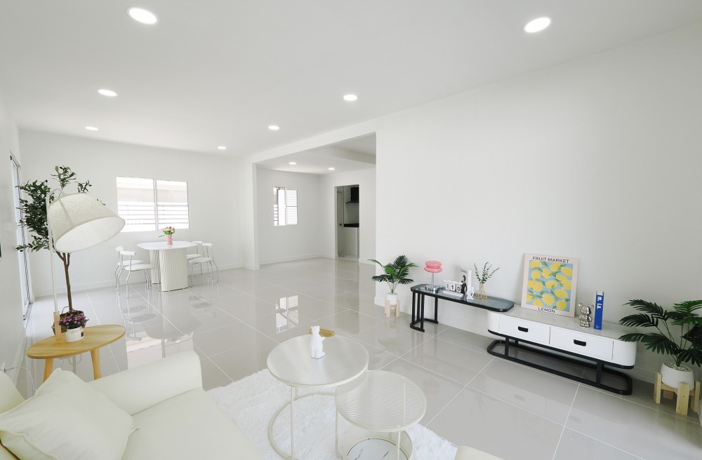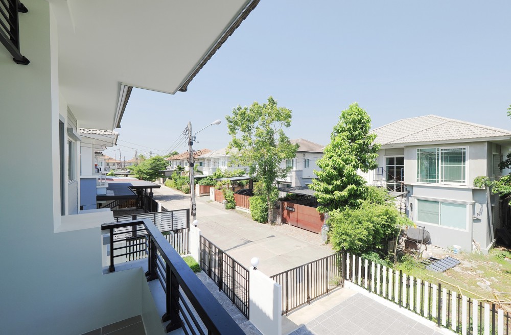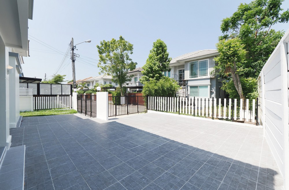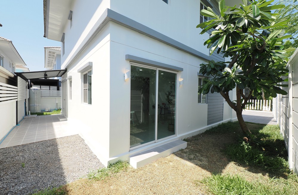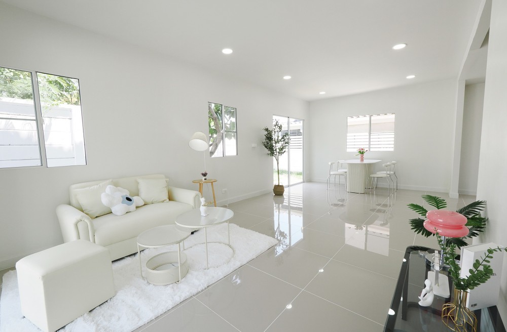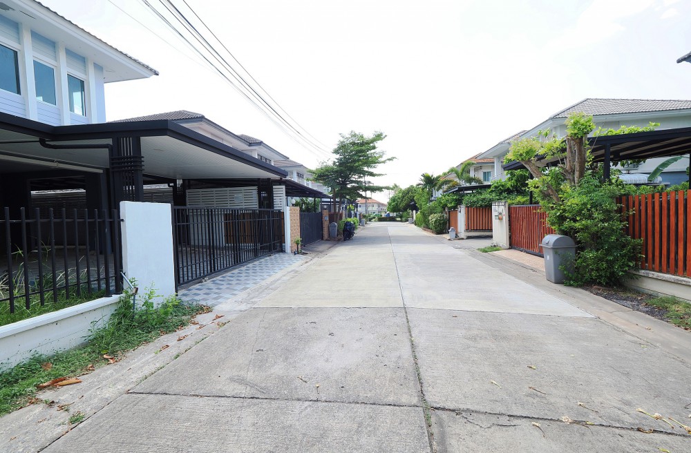 - ภายในบ้าน ปูพื้นแกรนิตโต้ ชั้นบนลามิเนต บันไดไม้เนื้อแข็ง ประตู–หน้าต่างอลูมิเนียมบานเลื่อน ทาสีใหม่ทั้งหลัง พร้อมเฟอร์นิเจอร์ โซฟา โต๊ะ เก้าอี้ พรม ห้องน้ำโมเดิร์นแยกส่วนเปียก–แห้ง ระบบไฟ LED ครัวพร้อมเคาน์เตอร์ เครื่องดูดควัน และซิงค์ล้างจาน ห้อง Master ขนาดใหญ่มีระเบียง จอดรถในบ้านได้ 2 คัน