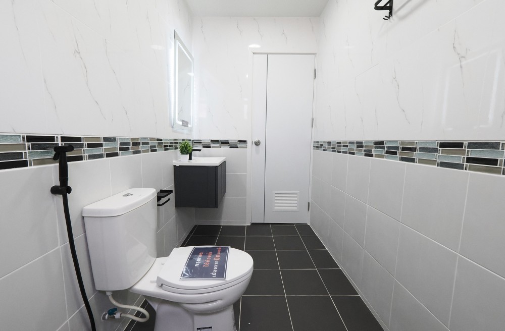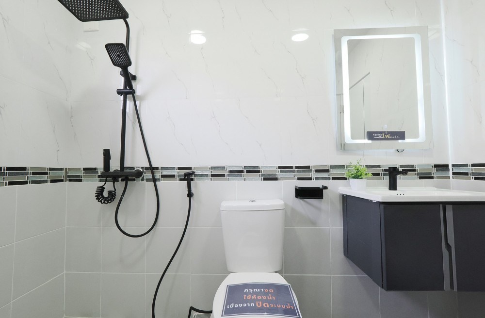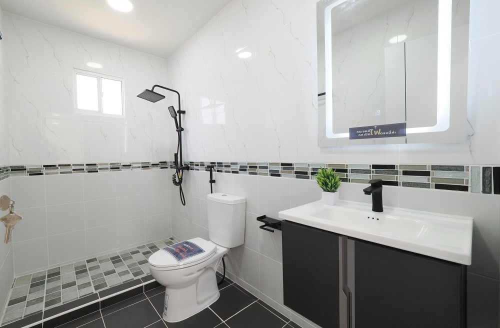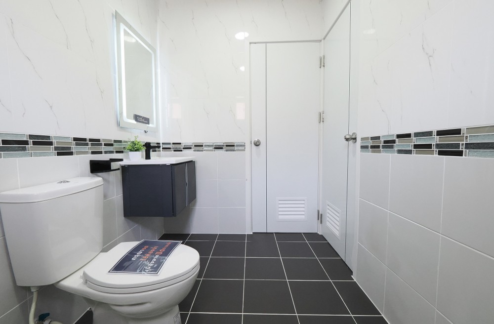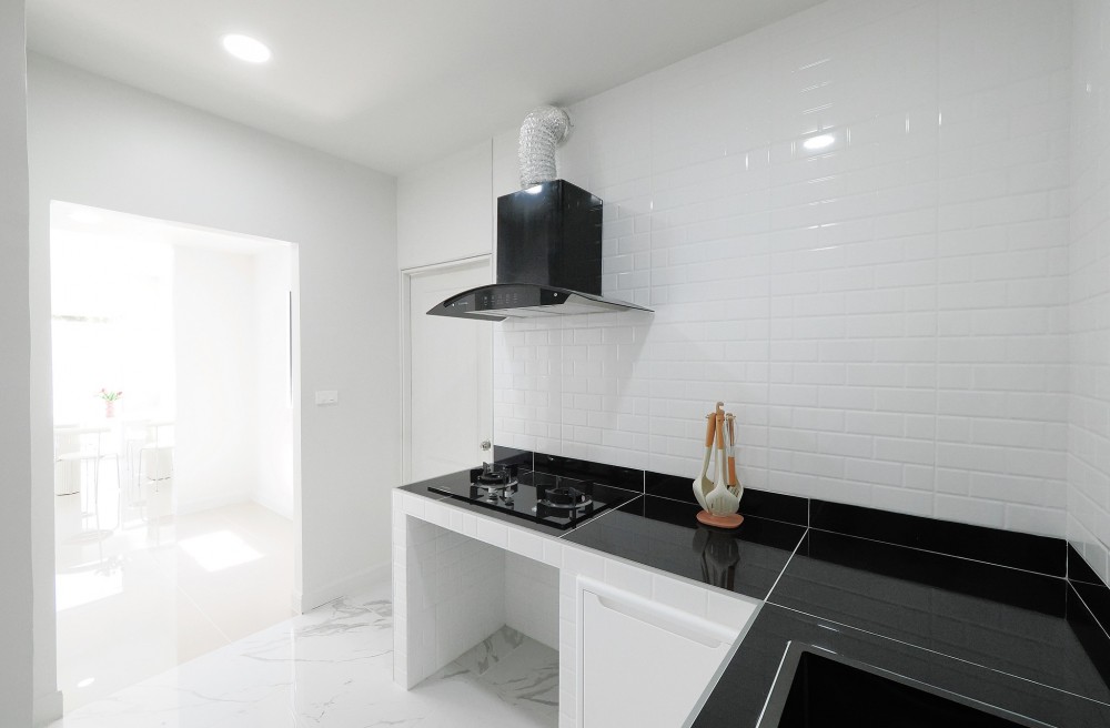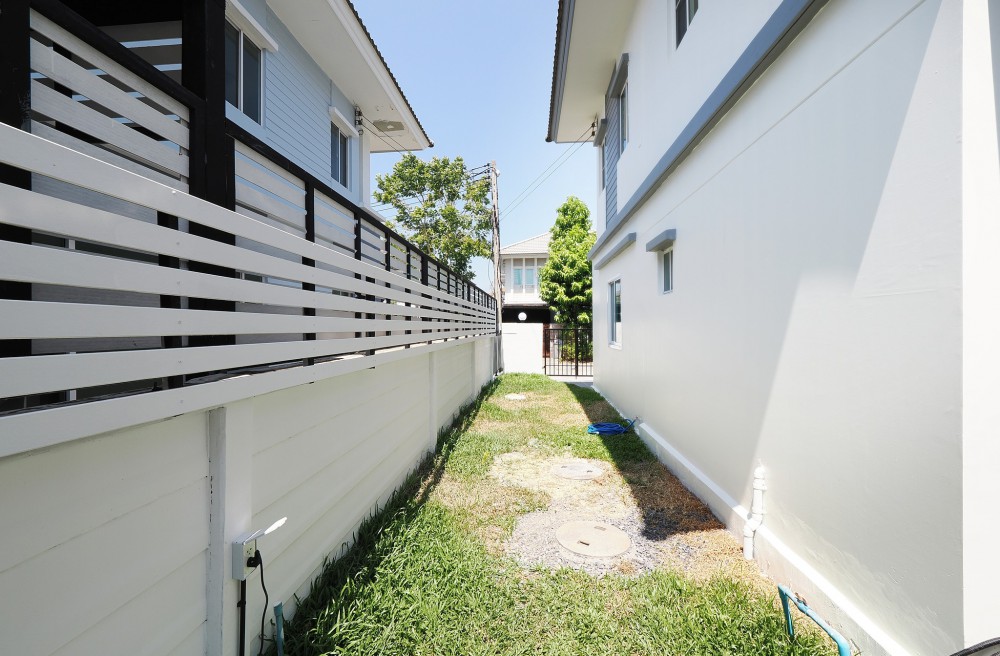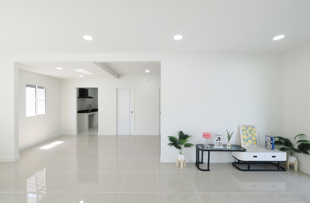 - ภายในบ้าน ปูพื้นแกรนิตโต้ ชั้นบนลามิเนต บันไดไม้เนื้อแข็ง ประตู–หน้าต่างอลูมิเนียมบานเลื่อน ทาสีใหม่ทั้งหลัง พร้อมเฟอร์นิเจอร์ โซฟา โต๊ะ เก้าอี้ พรม ห้องน้ำโมเดิร์นแยกส่วนเปียก–แห้ง ระบบไฟ LED ครัวพร้อมเคาน์เตอร์ เครื่องดูดควัน และซิงค์ล้างจาน ห้อง Master ขนาดใหญ่มีระเบียง จอดรถในบ้านได้ 2 คัน