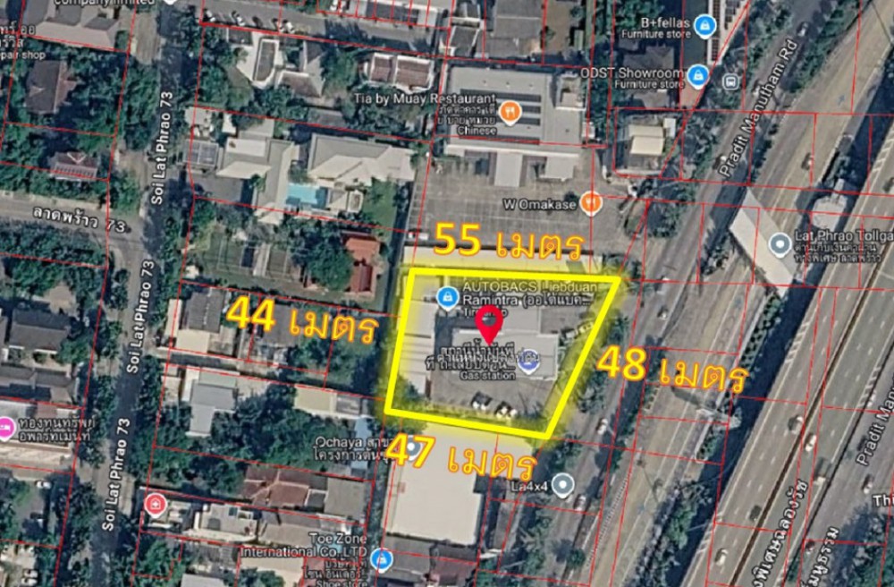 เขตวังทองหลาง , จังหวัดกรุงเทพมหานครขายที่ดินพร้อมปั๊มน้ำมัน ติดถนนใหญ่ ประดิษฐ์มนูธรรม(เลียบด่วนรามอินทรา) เหมาะทำปั๊มน้ำมันต่อเนื่อง หรือ ธุรกิจ/การค้า ขนาด 1-2-57 ไร่