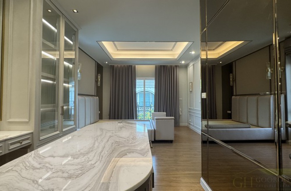 * Master Bedroom: ขนาดใหญ่พร้อมพื้นที่ Walk-in Closet และตู้เสื้อผ้าหน้าบานกระจกหรู