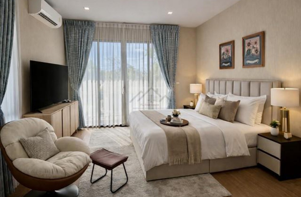 มี 1 ห้องอเนกประสงค์ ต่อเติม ห้องครัว + โรงจอดรถหน้าบ้าน (ลงเสาเข็มไมโครไพล์) ค่าส่วนกลางฟรี ค่าคนสวนฟรี