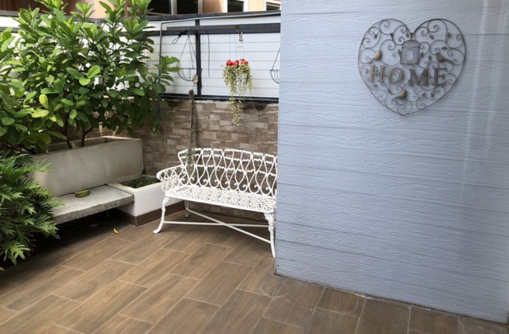 - หลังบ้านมีสวนสไตล์ Loft ไว้จิบกาแฟ หรือเล่นโยคะตอนเช้า
