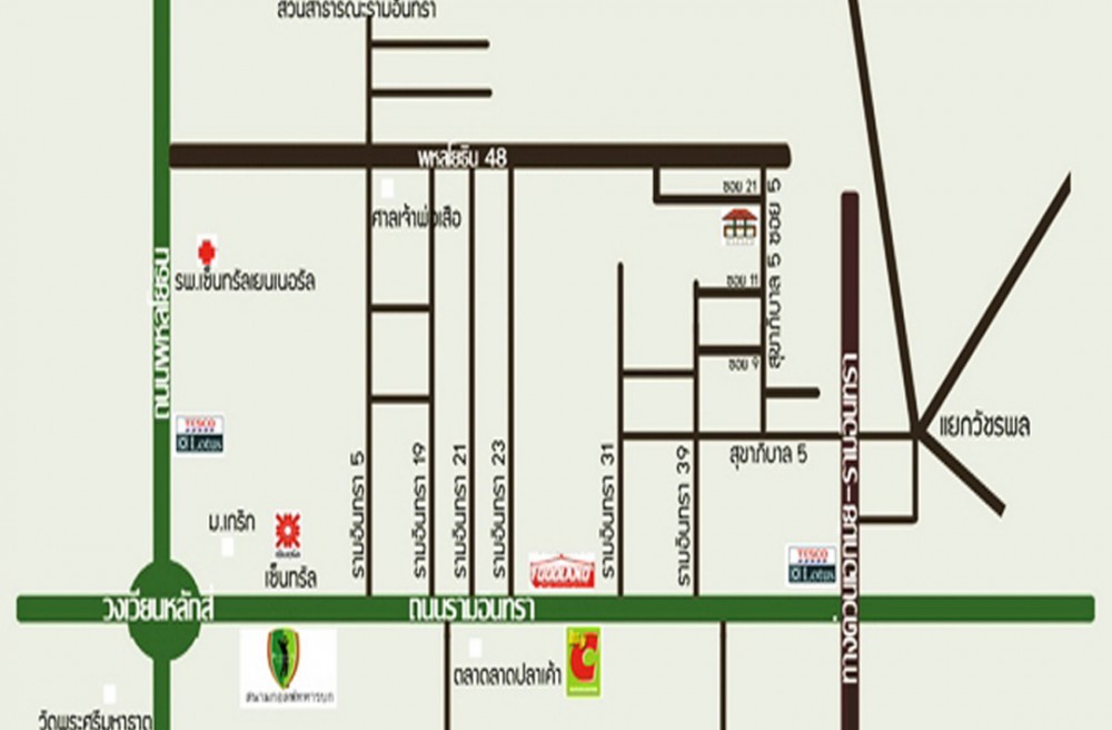 - ทำเล รามอินทรา วัชรพล เทพรักษ์ ถนนพหลโยธิน48 จากที่ตั้งโครงการ มีทางลัดเยอะ เลี่ยงรถติดได้หลายเส้นทาง