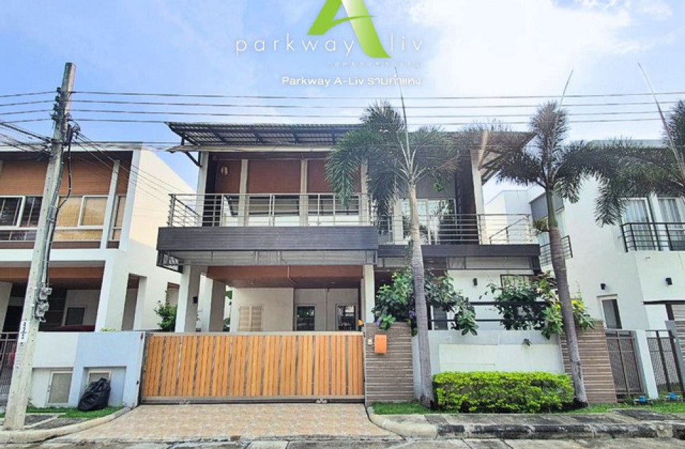 เขตมีนบุรี , จังหวัดกรุงเทพมหานครขาย ให้เช่า บ้านเดี่ยว หน้าสวน Parkway Aliv รามคำแหง (ปาร์คเวย์ชาเล่ต์ เฟสใหม่) ติดรถไฟฟ้า 3 ห้องนอน 4 ห้องน้ำ บ้านสวยไม่ต้องซ่อม พร้อมตกแต่ง