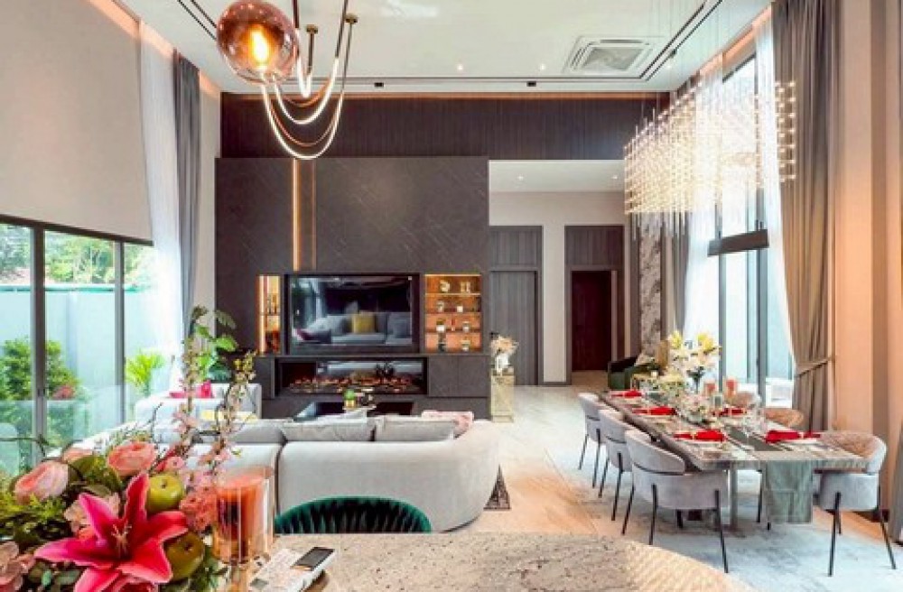 - ห้องนั่งเล่นสุดหรู พื้นที่กว้างขวาง สูง 4.5 เมตร