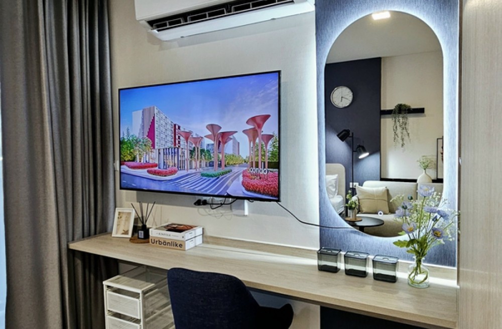 ▪︎ โต๊ะทำงานบิ้วอิน 2 เมตร กระจกแต่งหน้าไฟ LED