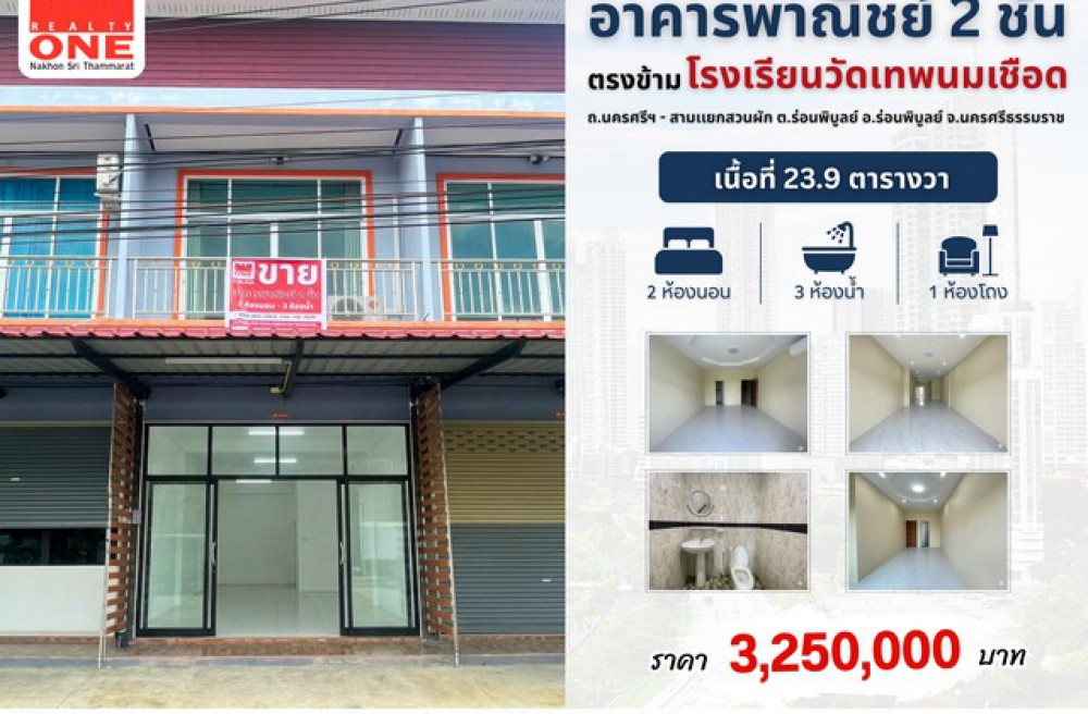 ร่อนพิบูลย์ , จังหวัดนครศรีธรรมราชอาคารพาณิชย์ 2 ชั้น ทำเลดี ตรงข้ามโรงเรียนวัดเทพนมเชือด