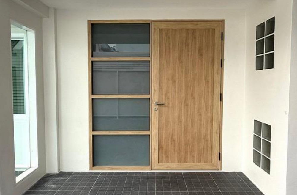 มี 1 ห้องอเนกประสงค์ 1 ห้องแม่บ้าน+ห้องน้ำ จอดรถในบ้าน 2 คัน พร้อมประตูรีโมท