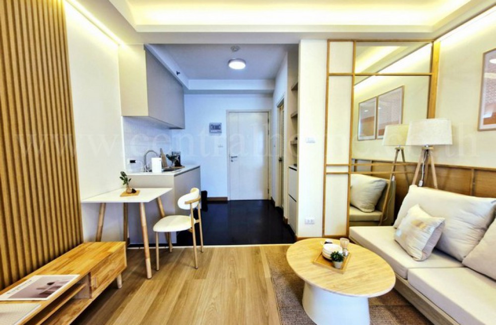 - 1 ห้องนอน, 1 ห้องน้ำ, 1 ห้องนั่งเล่น พร้อมเคาท์เตอร์ครัว แถมแอร์ 1 เครื่อง