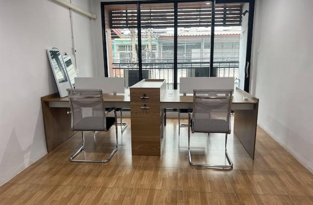 มีห้องผู้จัดการ มีห้องประชุม มีพื้นที่เก็บของชั้นบน ติดแอร์ทุกห้อง จอดรถในบ้านได้ 2 คัน