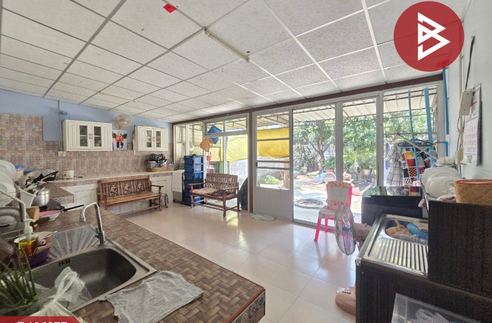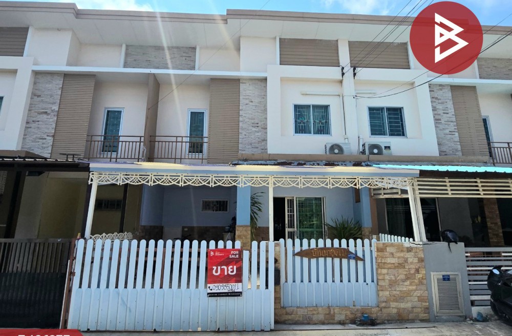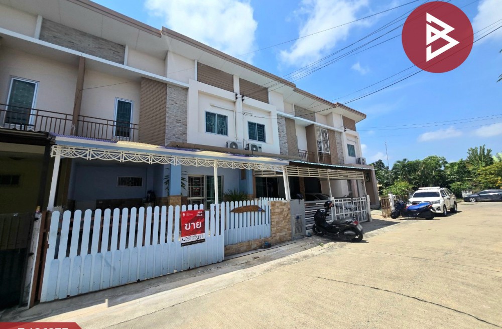 ทาวน์เฮ้าส์ 2 ชั้น มีพื้นที่ว่างด้านหลังกว้างและติดริมคลอง ต่อเติมเต็มหน้าบ้าน และครัวหลังบ้าน จอดรถได้ 2 คัน