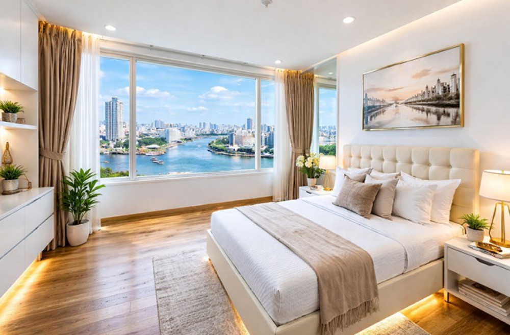 คอนโดหรูริมแม่น้ำในโครงการ Watermark Chaophraya ชั้นสูง วิวแม่น้ำเจ้าพระยาแบบไร้สิ่งกีดขวาง ให้บรรยากาศผ่อนคลายเหมือนรีสอร์ทใจกลางเมือง