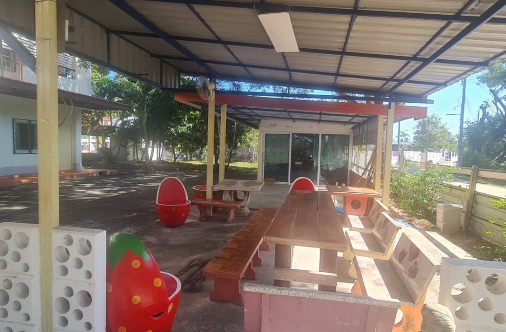 ** มีพื้นที่นั่งเล่นนอกอาคาร มีหลังคาอย่างดี