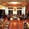 - ตัวบ้านด้านนอกและด้านในเป็นไม้มะค่าทั้งหลัง ภายในพื้นบางจุดเป็นไม้ปาร์เก้ และบางจุดเป็นหินอ่อน หินแกรนิต