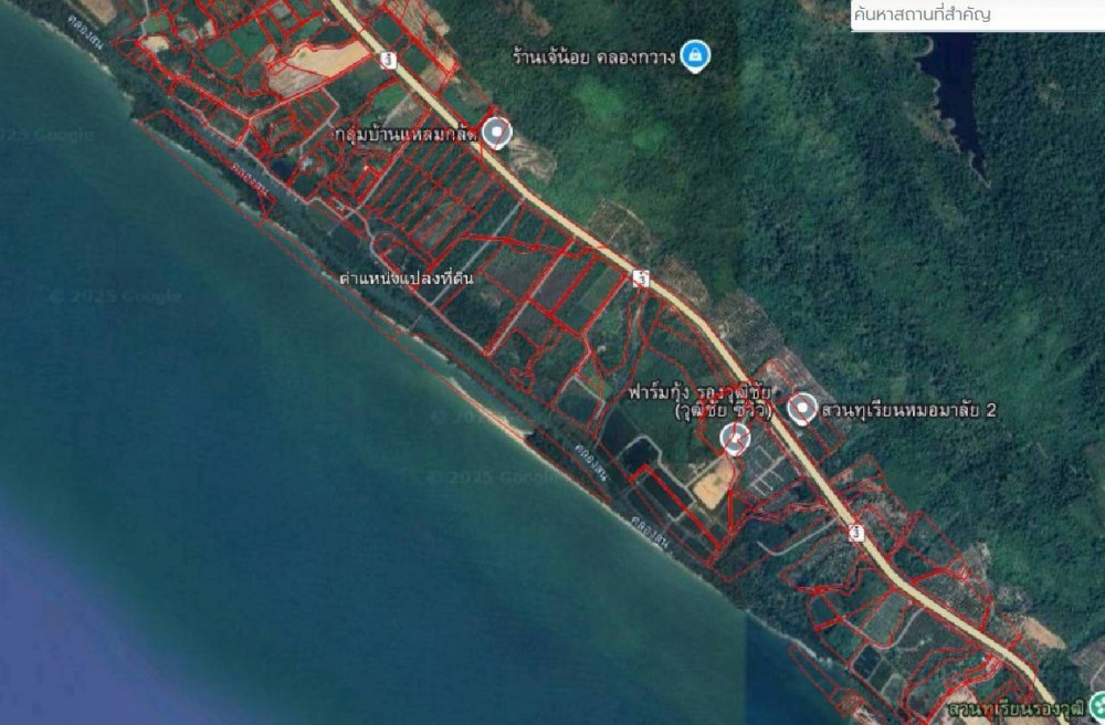 จากตราดไปคลองใหญ่ถึงหาดเล็กชายแดนกัมพูชาเป็นถนน4เลนที่ดินอยู่ที่กิโลเมตร34-35ถึงป้ายแล้วยูเทรินเข้าปากซอยลุงสว่างเป็นถนนคอนกรีตเข้าไป7-800เมตรถึงหน้าที่ดิน