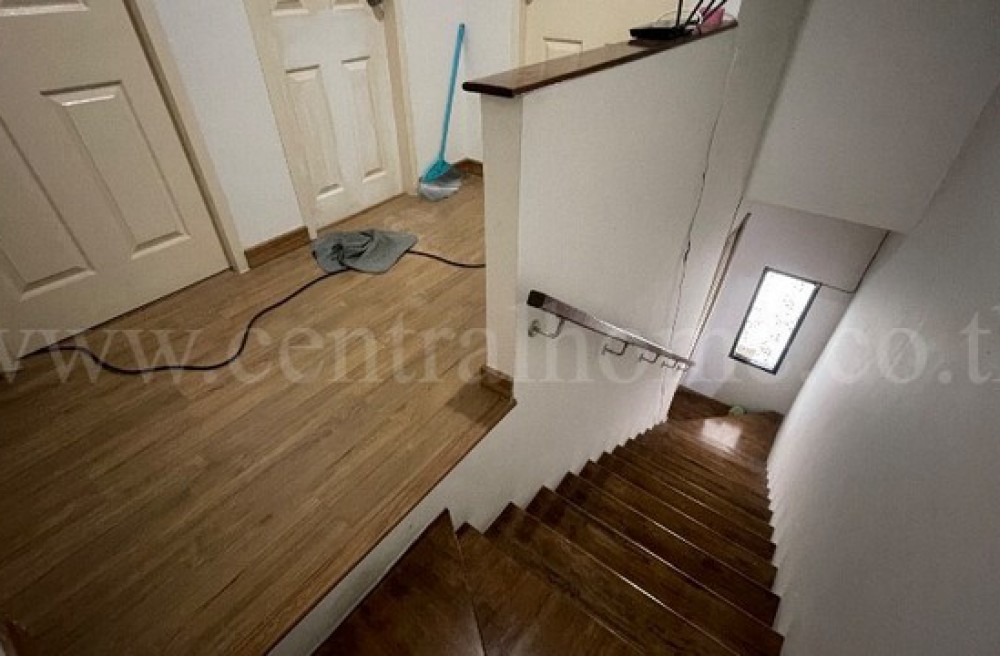 - พื้นชั้นบนไม้ลามิเนต, พื้นชั้นล่างกระเบื้อง