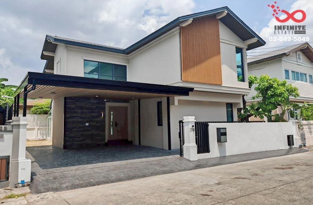 รีวิว : บ้านสวยรีโนเวทใหม่ทั้งหลัง ในย่านเลียบด่วนเอกมัย–รามอินทรา ฟังก์ชั่นครบ ตัวบ้านมีพื้นที่ใช้สอยกว้างขวางถึง 200 ตารางเมตร รองรับการใช้งานได้อย่างลงตัว พร้อมที่จอดรถภายในบ้านได้ 2 คัน ระบบไฟ 3 เฟส รองรับ EV Charger ชั้นล่างออกแบบให้มีห้องนอน 1 ห้อง สามารถปรับใช้เป็นห้องทำงานได้ โดดเด่นด้วยโซน Glass House ด้านข้างบ้าน ให้บรรยากาศโปร่งโล่ง รับแสงธรรมชาติ เหมาะสำหรับทำเป็นห้องอเนกประสงค์ มุมพักผ่อน โซน Living Room ตกแต่งด้วยแอร์ฝังขนาด 36,000 BTU ห้องน้ำชั้นล่างออกแบบแยกส่วนเปียก–แห้ง พร้อม Shower และที่นั่งอาบน้ำ ชั้นบนประกอบด้วย 3 ห้องนอน และ 2 ห้องน้ำ ตัวบ้านตั้งอยู่ใกล้สวนสาธารณะและส่วนกลางของโครงการ บรรยากาศร่มรื่น