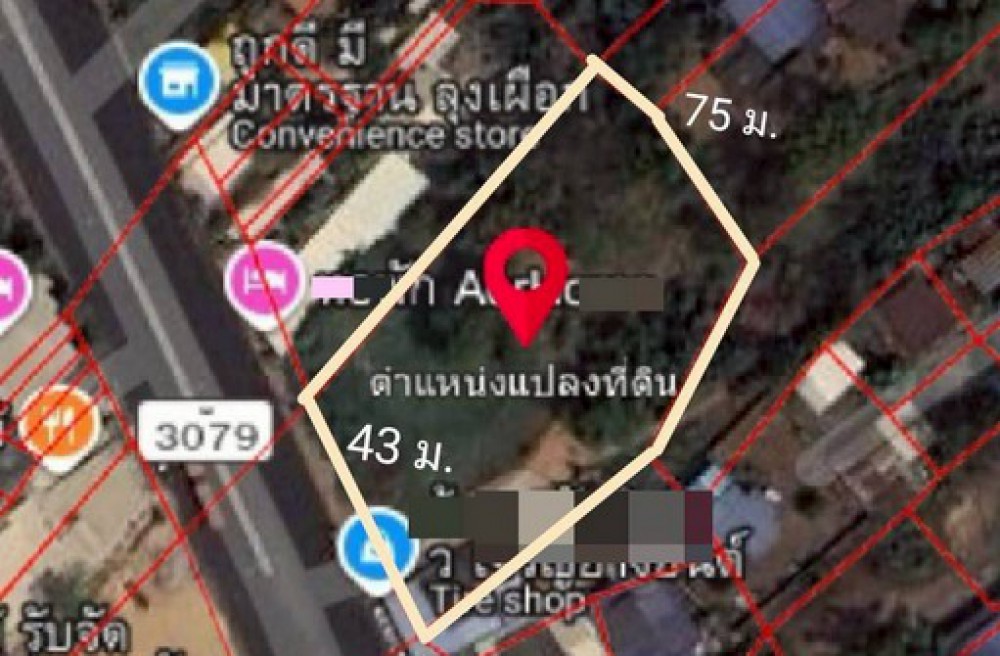 ขนาดที่ดิน: กว้าง x ลึก ประมาณ 43 x 75 เมตร