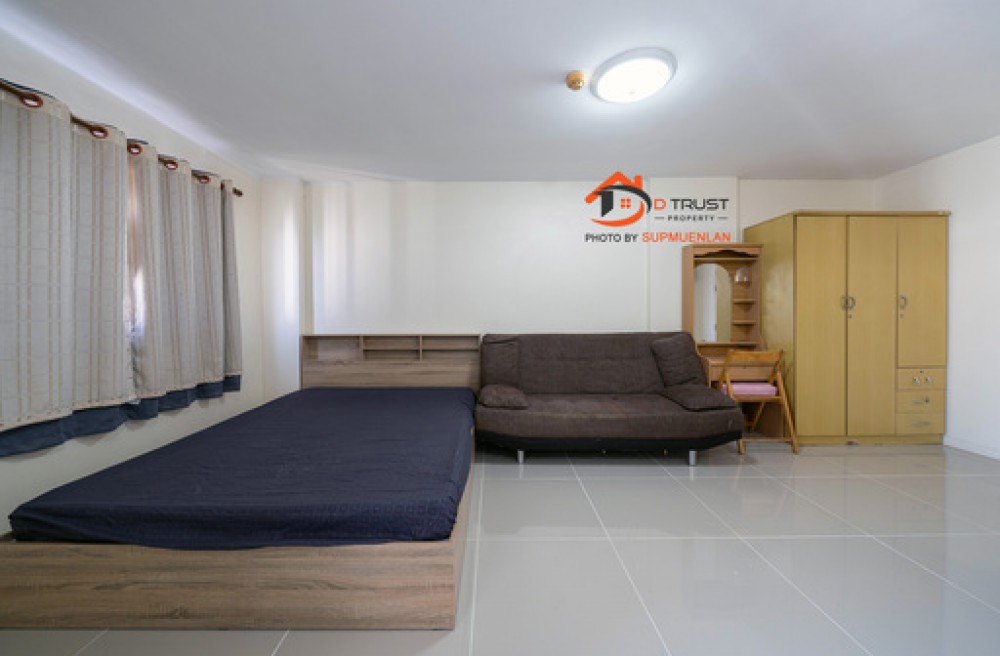 ตกแต่ง : แอร์ 1 เครื่อง / ตู้เย็น 2 ประตู / ไมโครเวฟ / เครื่องทำน้ำอุ่น / โซฟา / ผ้าม่าน / เตียงนอน 5 ฟุต / ตู้เสื้อผ้า