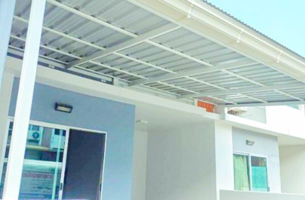 ต่อเติมหลังคาที่จอดรถด้านหน้า และหลังบ้านเรียบร้อย จอดรถได้ 1 คัน