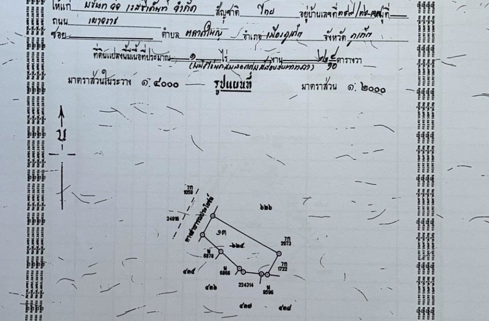 ที่ดินอยู่บนเขา มองเห็นวิวทะเลจากระยะไกล ติดถนน มีถนนคอนกรีตขึ้นไปถึงที่ดินเปล่าด้านบนสุด อยู่ใกล้โรงเรียนและวัดฉลอง ใกล้ห้างโรบินสัน และใกล้ปั๊มน้ำมัน 2 แห่ง