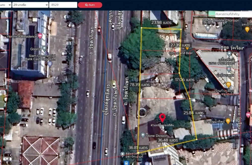 หน้ากว้างติดถนนรัชดา 78 เมต