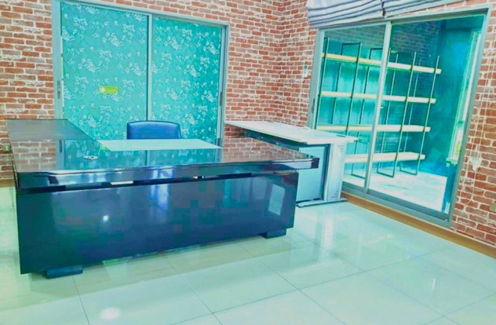 พร้อมเฟอร์นิเจอร์ โต๊ะทำงาน เก้าอี้ ตู้เอกสาร เครื่องพิมพ์ ชั้นวางของ ตู้เย็น และเตียงขนาดใหญ่