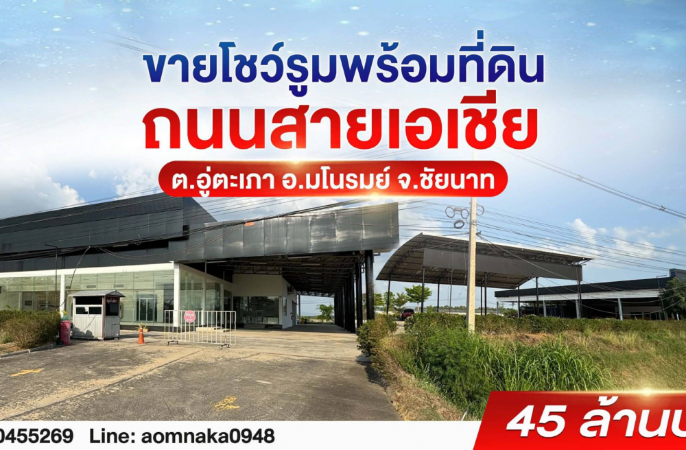 ขายถูกมาก!! โชว์รูมพร้อมที่ดิน 5 ไร่ ติดถนนสายเอเชีย ทำเลทอง อ.มโนรมย์ จ.ชัยนาท ใกล้ตัวเมือง สี่แยกหางน้ำสาคร