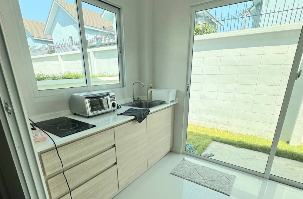 ห้องครัวแยกเป็นสัดส่วน (มีเตาไฟฟ้า และ ตู้เย็นให้)