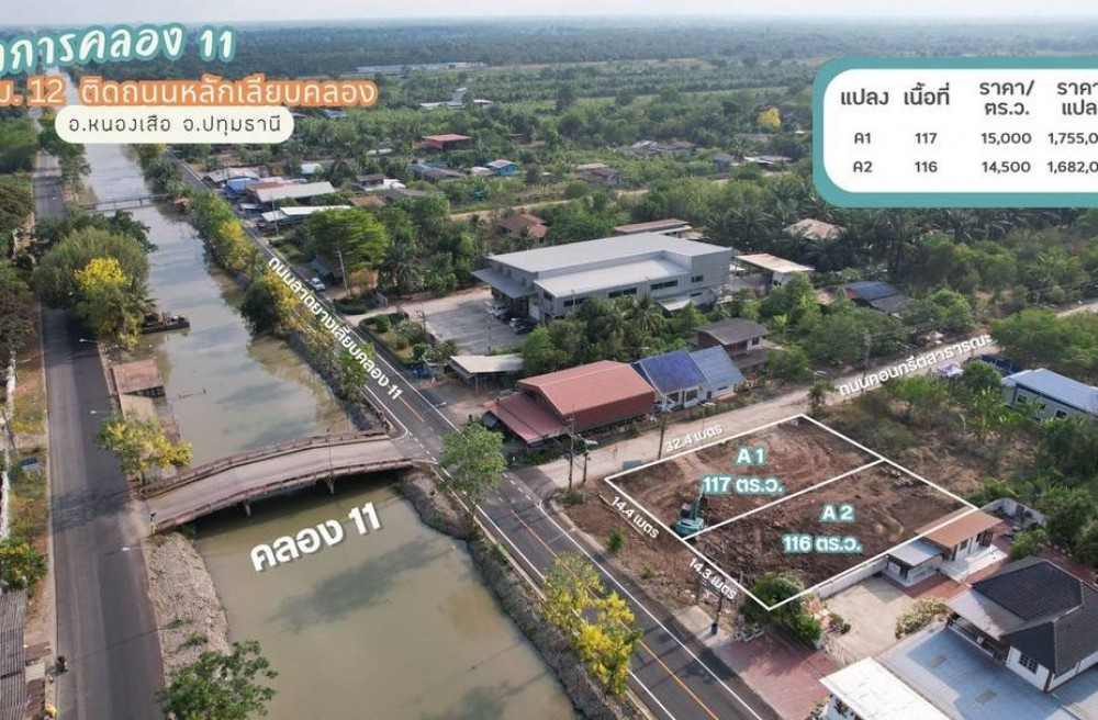 หนองเสือ , จังหวัดปทุมธานีที่ดินติดถนนสายหลักเลียบคลอง 11 ปรับถมแล้ว อ.หนองเสือ จ.ปทุมธานี