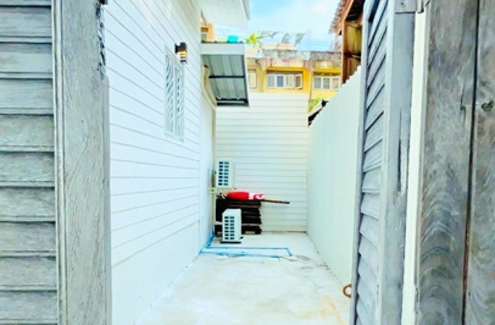 บ้านชั้นเดียวขนาดกะทัดรัด เหมาะสำหรับอยู่อาศัยในเมือง ซอยกว้างประมาณ 1.5 เมตร เข้าได้แต่จอดรถจักรยานยนต์ รถยนต์เข้าไม่ได้