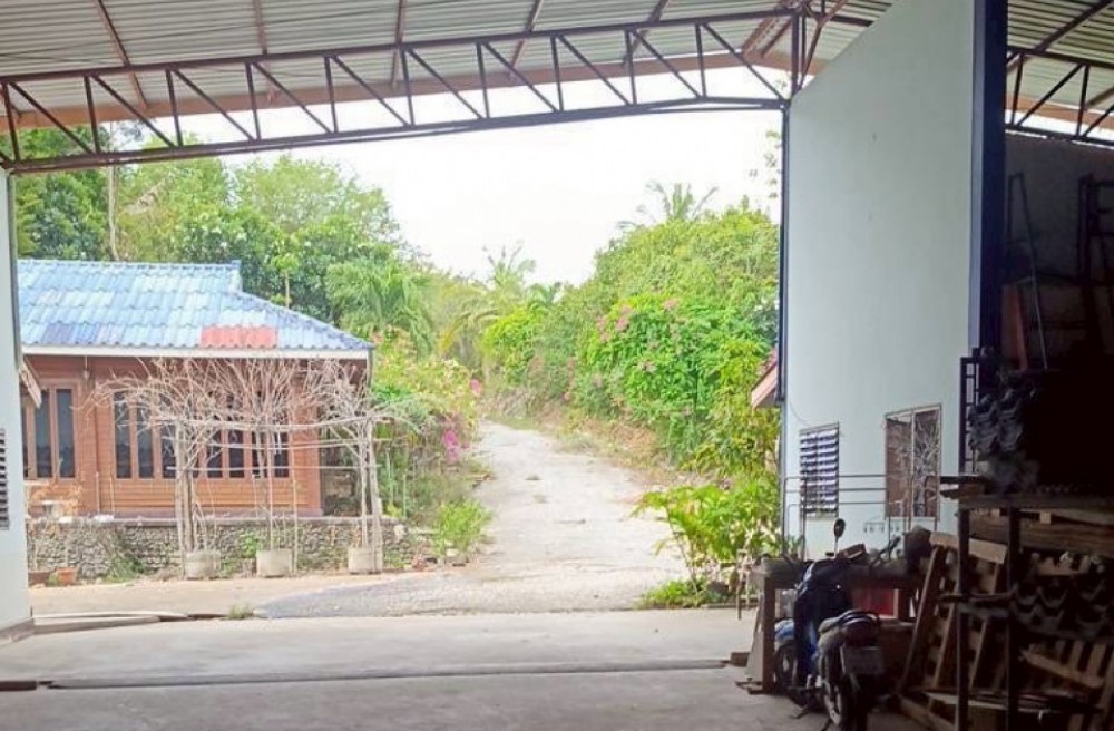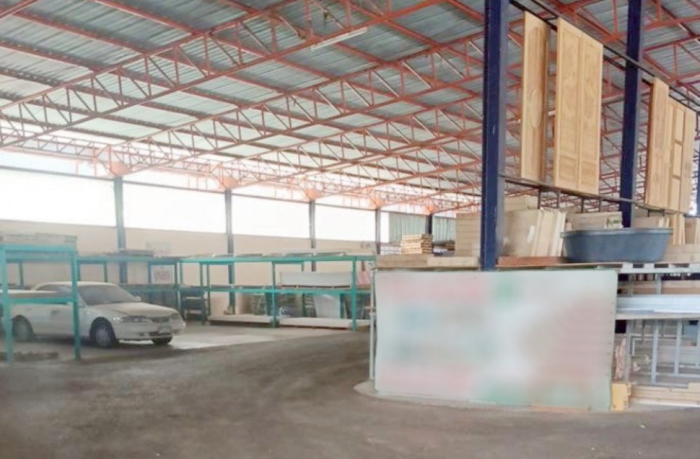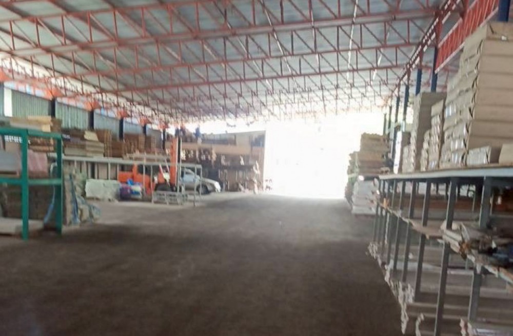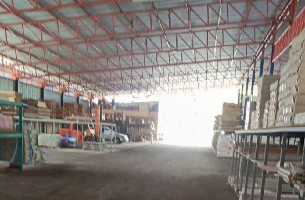 อาคารด้านหลัง : คลังสินค้าขนาดใหญ่บนเนื้อที่ 3,200 ตร.ม. โครงสร้างแข็งแรง พื้นที่รับน้ำหนักได้ดี ระบายอากาศเยี่ยม มีศักยภาพสูงพร้อมใช้งาน