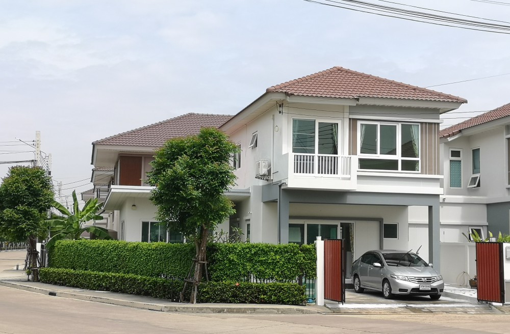ต่อเติมห้องครัวแยกจากตัวบ้าน พร้อมที่ซักล้าง แยกเป็นสัดส่วน มีแอร์ ผ้าม่าน ปั๊มน้ำแท๊งน้ำ และสวนตกแต่งรอบบ้าน ที่จอดรถ 2 คัน บ้านหัวมุม ติดถนนหลักกว้าง 16 เมตร, 600 เมตรจากทางเข้าโครงการและสโมสร, 50 เมตรจากสวนสาธารณะ