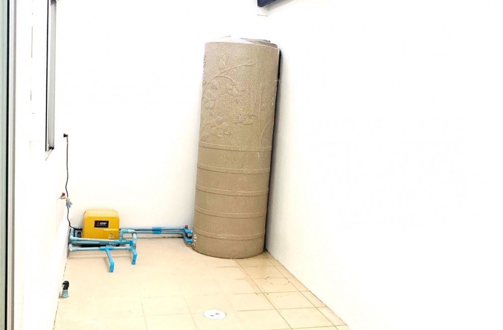 1 โซนต่อเติมซักล้างปูกระเบื้องหลังบ้าน พร้อมหลังคากันสาด ปั๊มน้ำและแท็งค์น้ำ