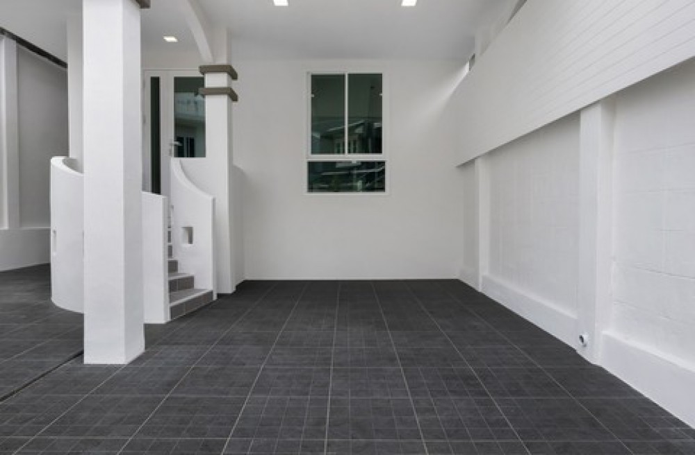 - พื้นโรงจอดรถ ปูด้วยกระเบื้องกันลื่น