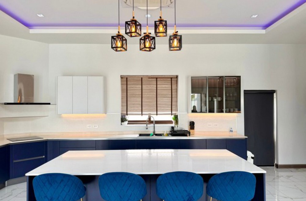 ครัวยุโรปขนาดใหญ่ + ไอซ์แลนด์หินอ่อนกลางบ้าน
