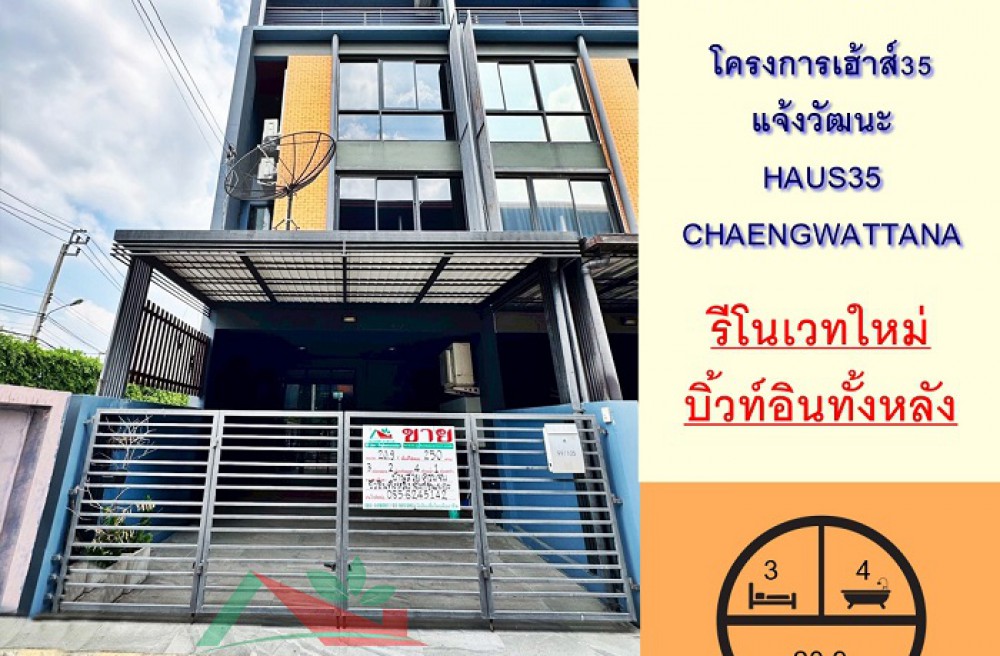ปากเกร็ด , จังหวัดนนทบุรีขายทาวน์โฮม3.5ชั้น 20.9ตรว. หลังริม โครงการเฮ้าส์35 แจ้งวัฒนะ รีโนเวทใหม่ จัดกู้ฟรี