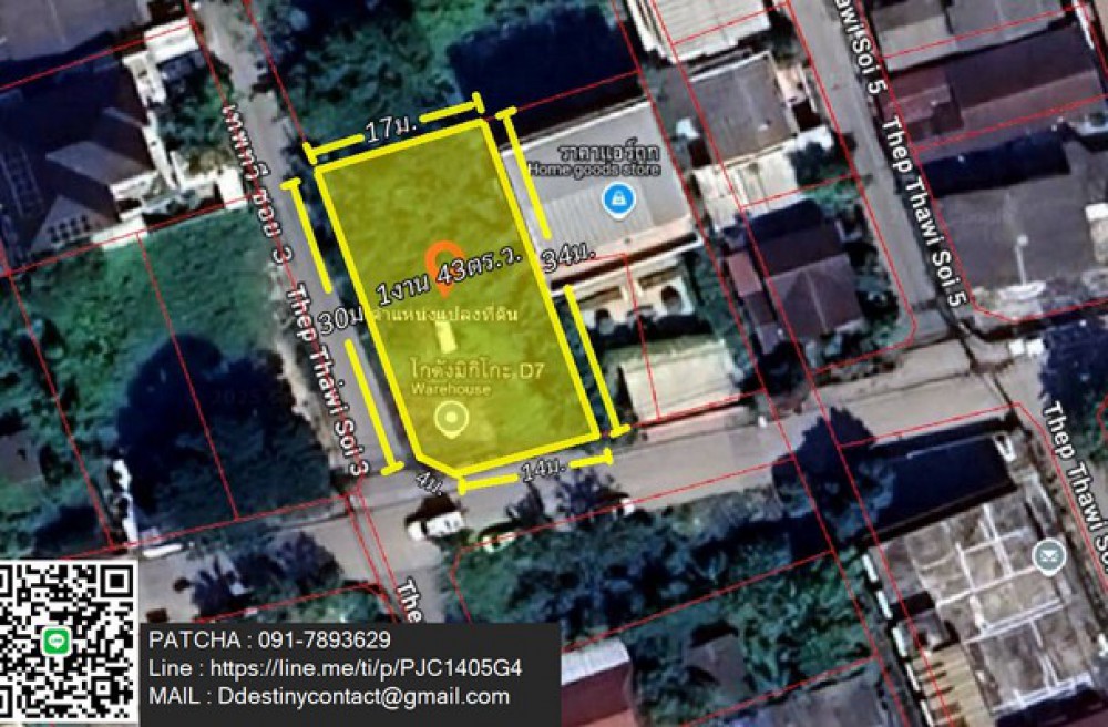 พื้นที่ : 1 งาน 43 ตารางวา